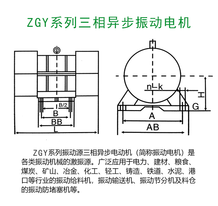 ZGY系列三相異步振動電機是我公司總結多年生產ZG系列振動電機的生產經驗,結合國內實際,與科研單位合作共同研制開發的新型振動電機。其各項技術指標均達到國內同類產品先進水平。